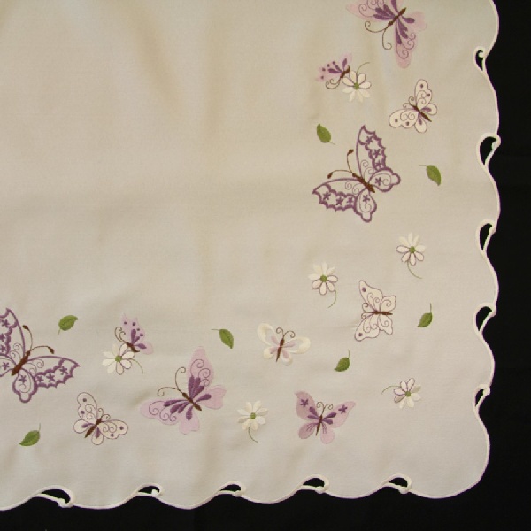 Beschreibung: Tischläufer / Deckeli besticktQualität (Stoff): PolyesterStickereifarbe: farbigGrösse: 40x90cmDesign: SchmetterlingWaschen in der Waschmaschinebei 40° CNicht bleichenFür Trockner geeignetMässig heiss b
